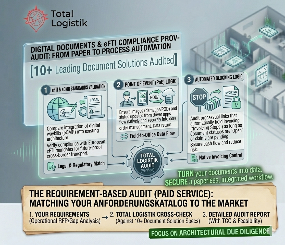 As part of our premium, paid audit service, we perform a technical cross-check to ensure your digital document strategy is fully integrated into your TMS workflow.